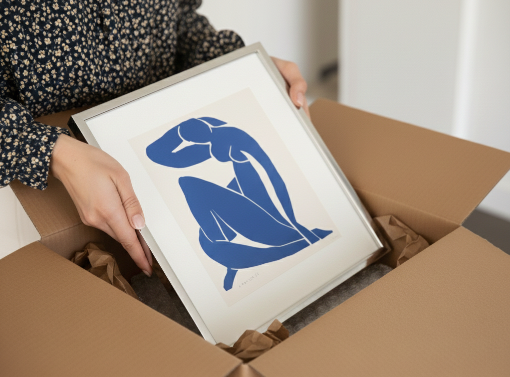 Du gestaltest deinen Rahmen einfach online – wir fertigen in unserer Hamburger Werkstatt millimetergenau in Handarbeit und liefern dein Bild fertig zum Aufhängen zu dir nach Hause.